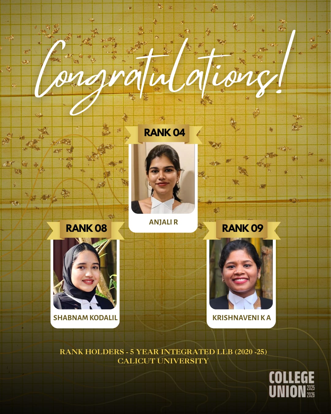 Calicut University Rank holders 3 year Unitary LLB