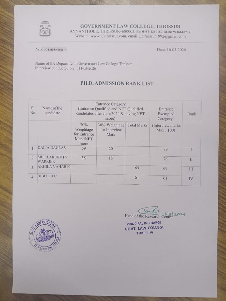 • Calicut University Rank holders 3 year Unitary LLB