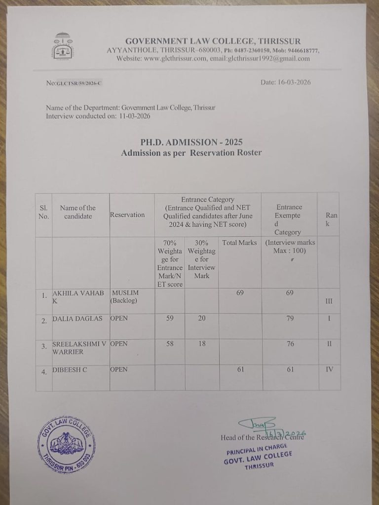 Government Law College Ayyanthole,Thrissur,Kerala, India,PIN: 680003